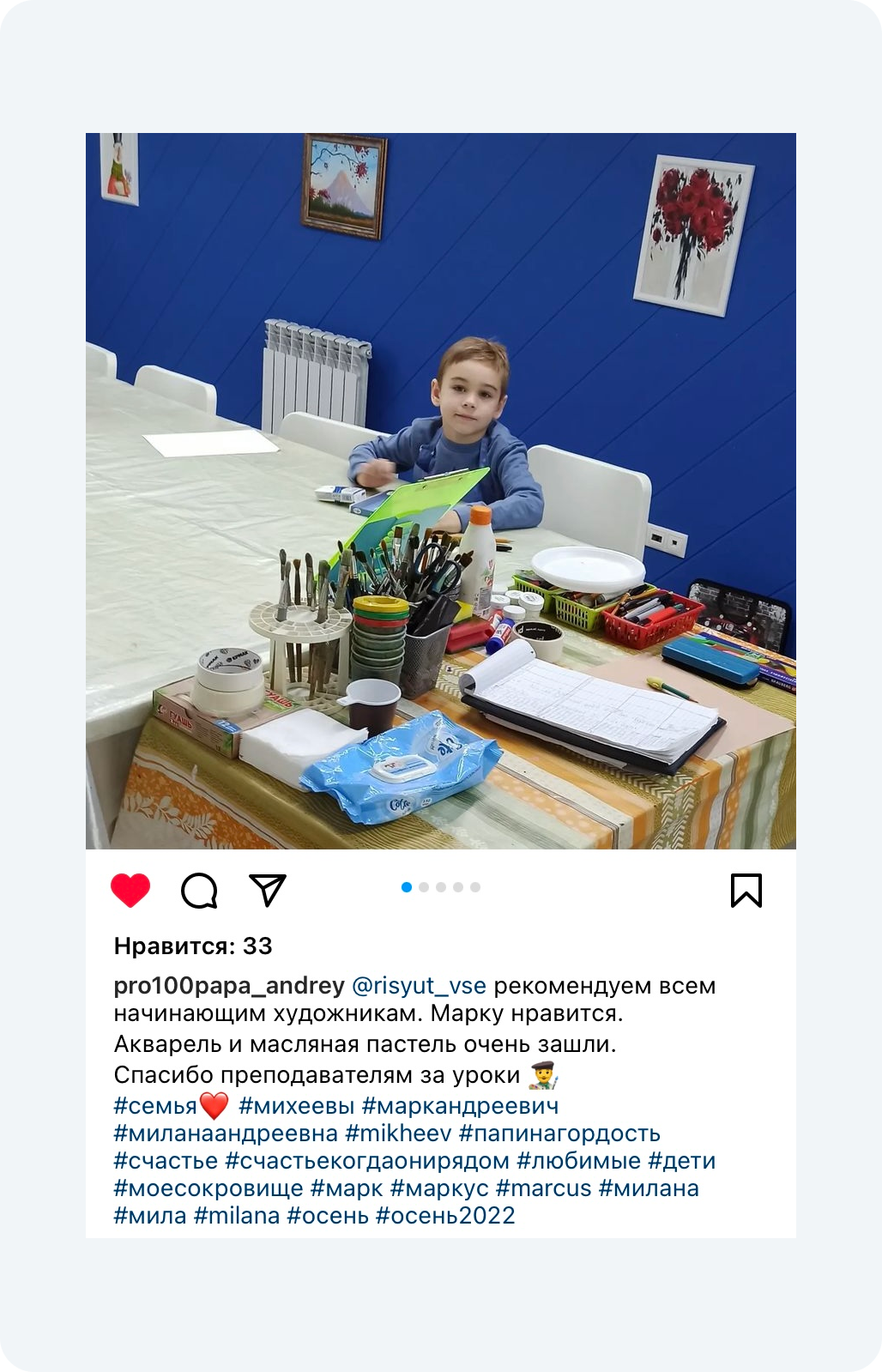 У учеников есть возможность посетить первое занятие по каждой технике, чтобы определиться с любимым направлением в рисовании. Все материалы для первого занятия мы предоставляем, вы оплачиваете только занятие
