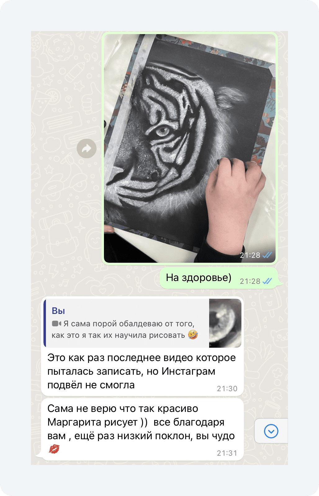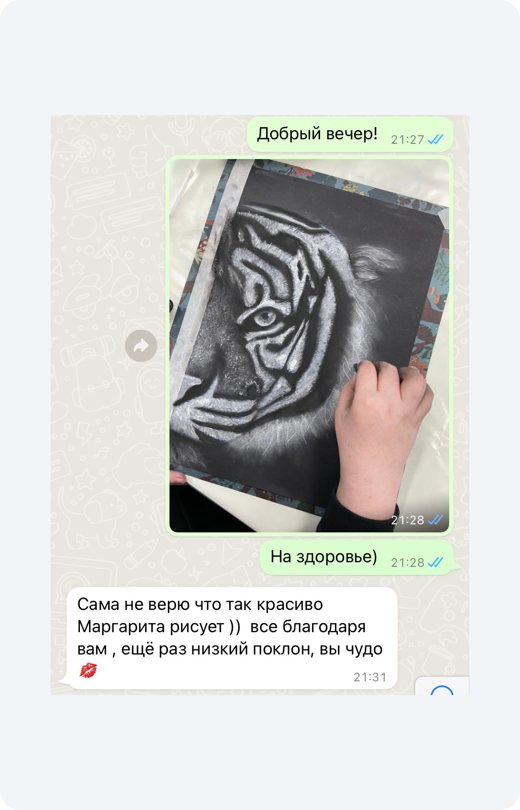 Работа с пастелью — это что-то среднее между живописью и рисунком. Разнообразные приемы, которым мы обучаем на занятиях, помогут создавать быстрые зарисовки, пейзажи, натюрморты и даже портреты людей и животных