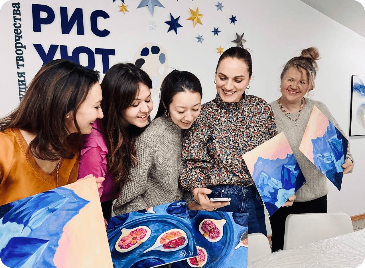 День Рождения, корпоратив, девичник — формат Арт-вечеринки подойдёт для любого повода. Мы предоставим все материалы, поможем подобрать сюжет, который понравится всем гостям. Фуршет, легкие закуски, чаепитие. Мы обязательно учтём все ваши пожелания в подготовке праздника! В расслабленной атмосфере творчества и общения вы создадите прекрасные картины, которые украсят ваши дома и будут служить воспоминаниям об этом приятном дне.