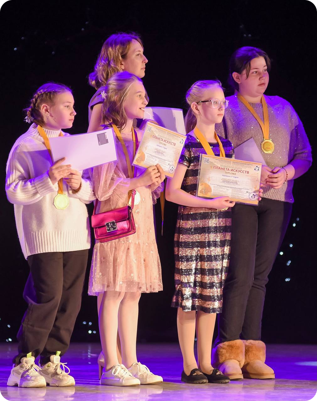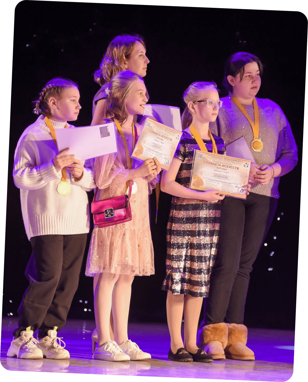 Наши ученики уже заработали много наград на муниципальных, общероссийских и международных конкурсах! И мы с удовольствием продолжаем двигаться к новым творческим горизонтам